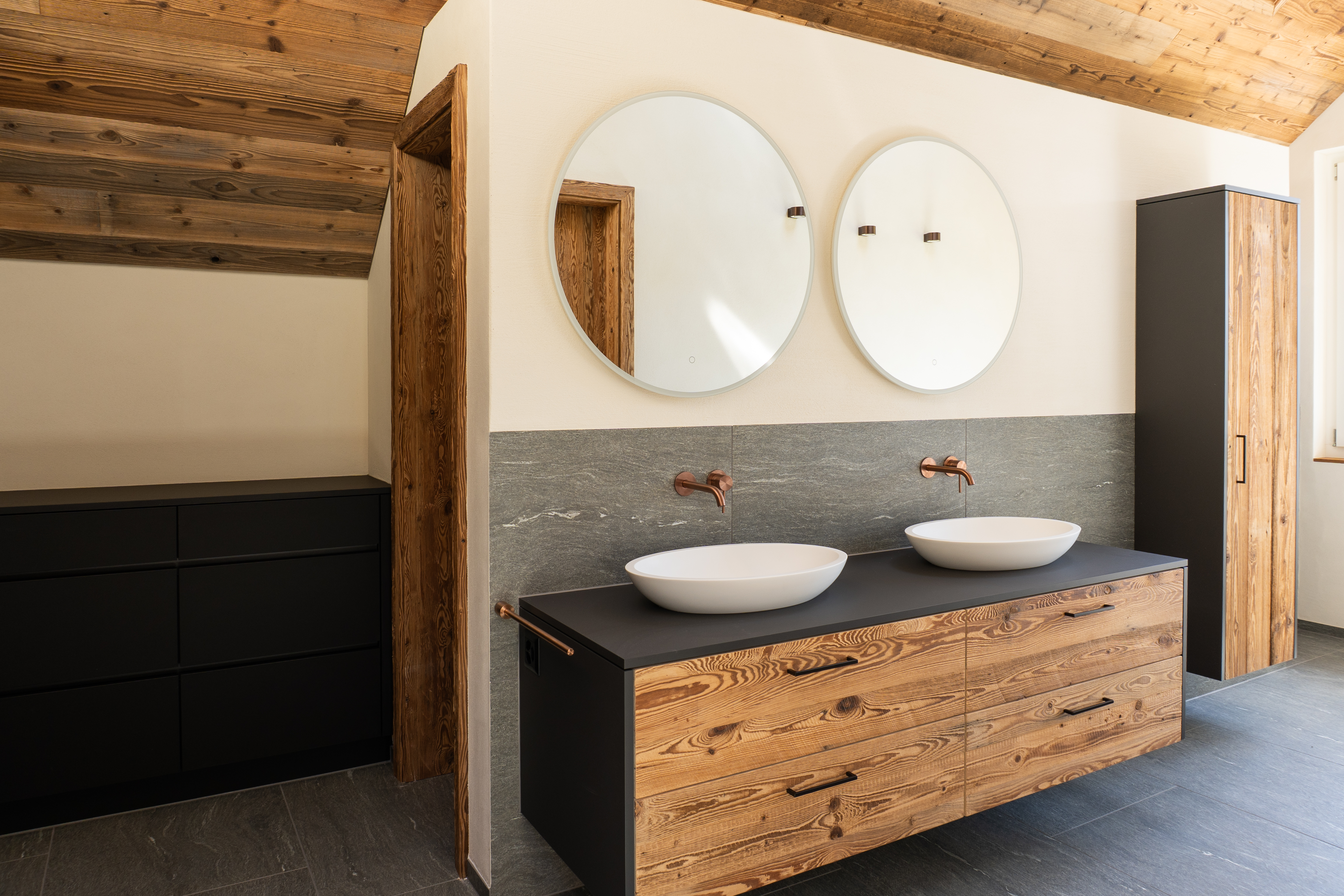 Bäder verstehen wir nicht nur als reine Funktionsräume, sondern als Orte für besonders entspannte Momente. Freuen Sie sich auf Ihre neue Wellnesszone – individuelle, geräumige und komfortable Möbel inklusive.