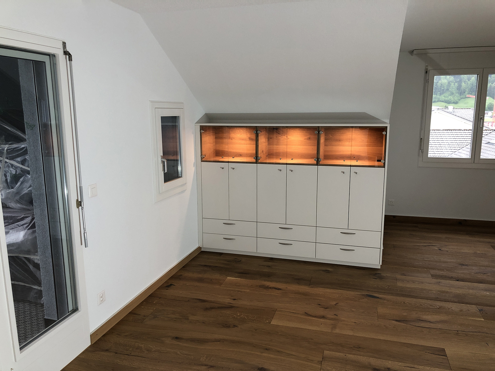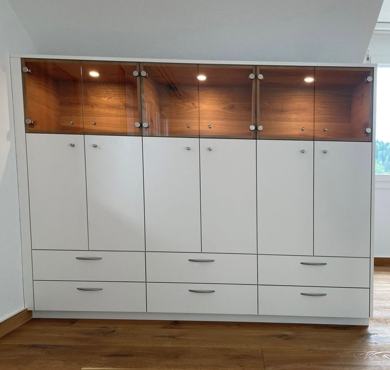 Einbauschränke, Ankleiden und Spezialanfertigungen – wenn es sein darf bis in den Giebel hinauf. Bei uns gilt: Keine Einschränkungen bei Schränken. Auch bezüglich Innenleben nicht: Schubladen, Englischzüge, Kleiderstangen, Garderobenlifte, Krawattenauszüge, Innenbeleuchtung etc. Alles ist möglich. Von schlicht und einfach in Kunststoffdekor bis hochwertig in Edelfurnier.
